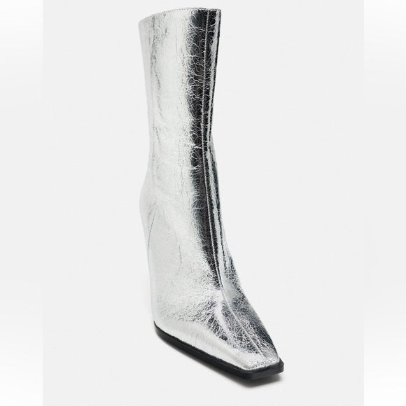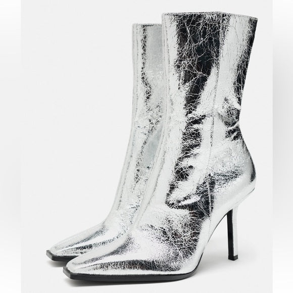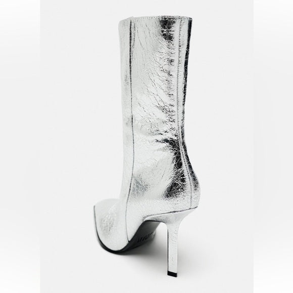 ZARA SILVER METALLICS HEELDE ANKLE BOOTS 3124/210/808