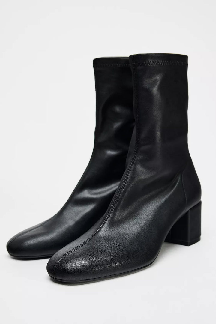 Zara Ankle boots with decorative stitching. Wide heel, round toe - 2101/510/800