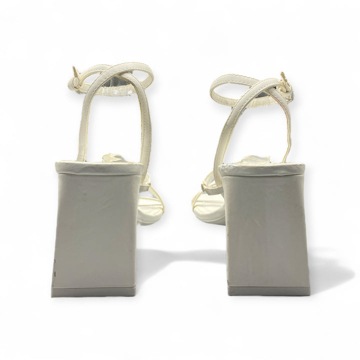 BERHSKA WHITE BLOCK HEEL WITH STRAP
