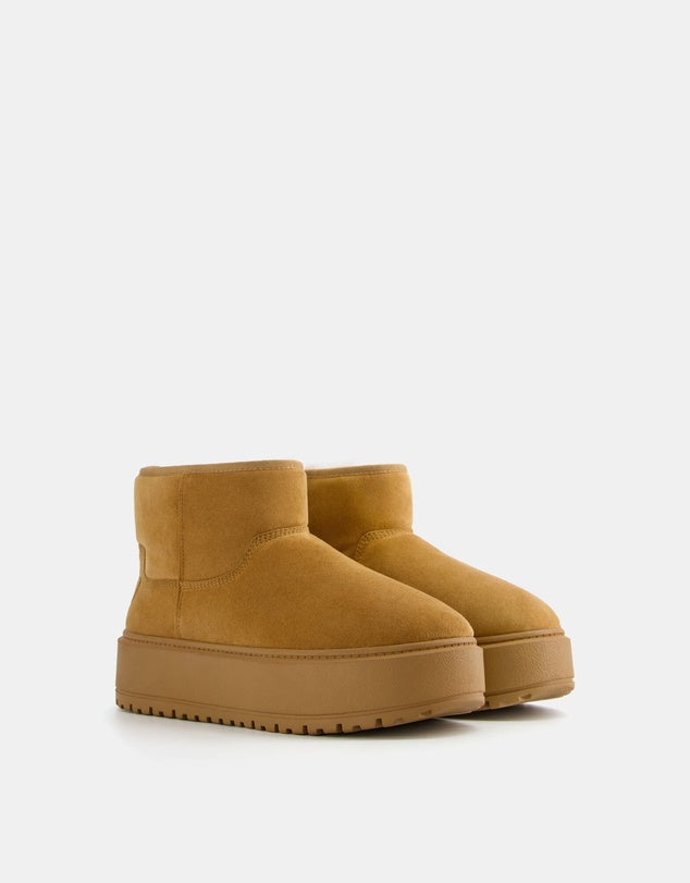 Bershka Platform Ankle Boots With Faux Fur Lining Boots