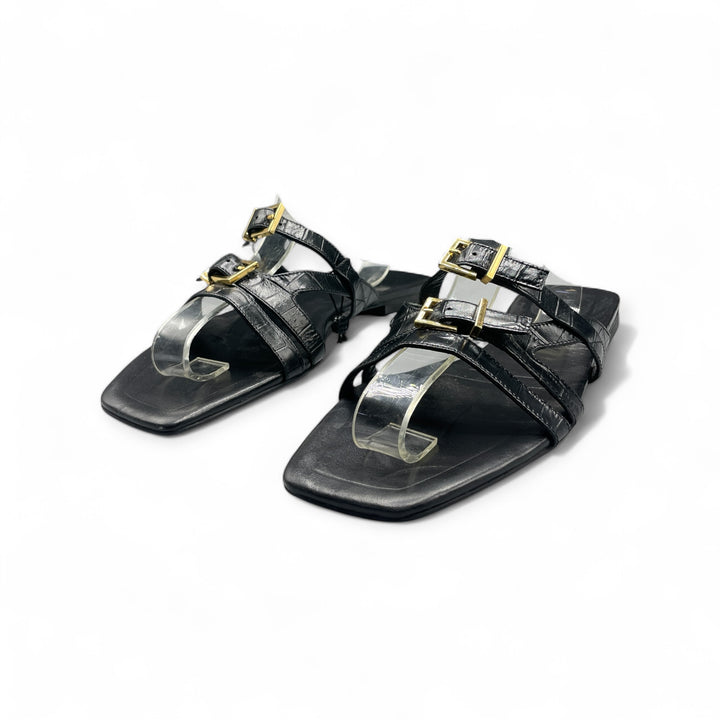 MASSIMO DUTTI FLAT BLACK WITH GOLDEN BUCKLE