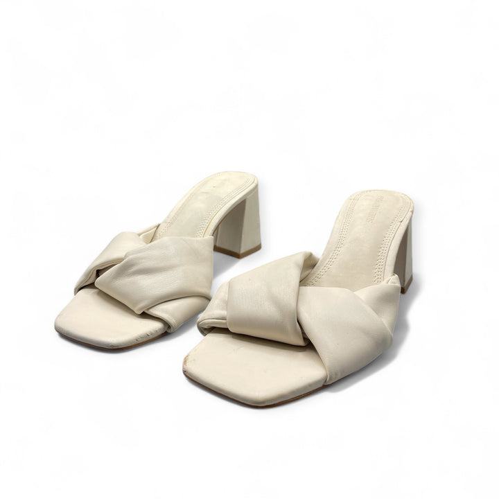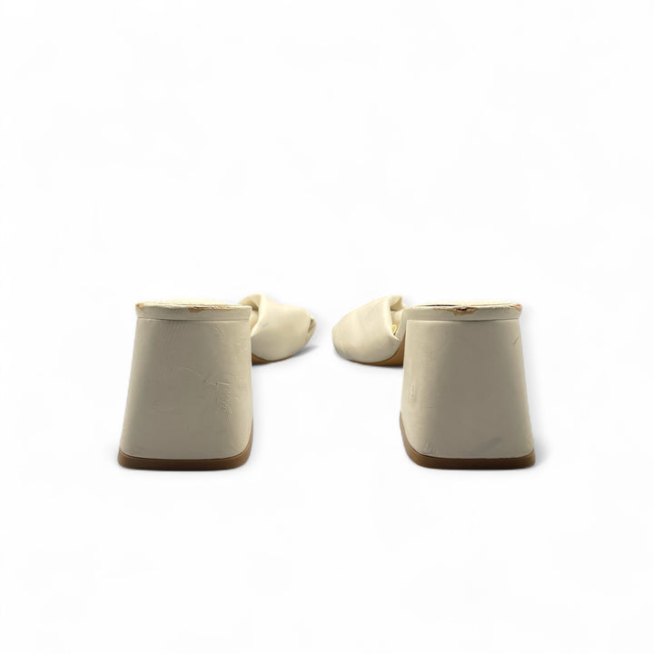 STRADIVARIUS CREAM WHITE KNOT DESIGN BLOCK HEEL