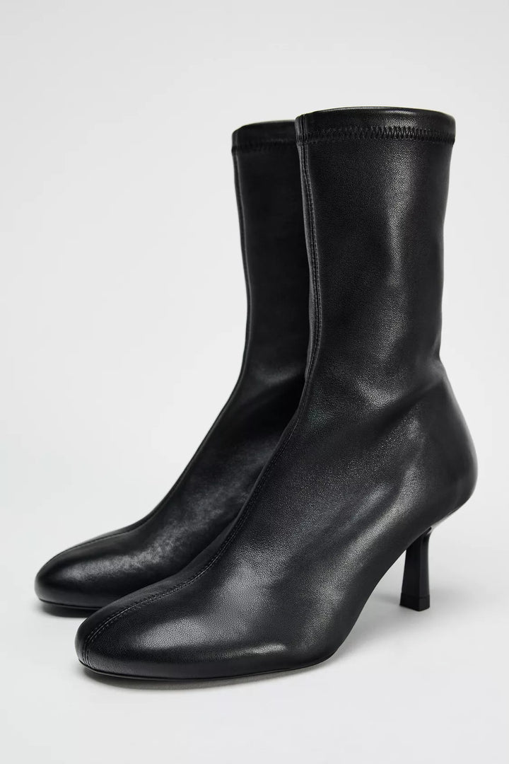 Zara Leather ankle boots. Heel-pin, round nose. 2101/410/800