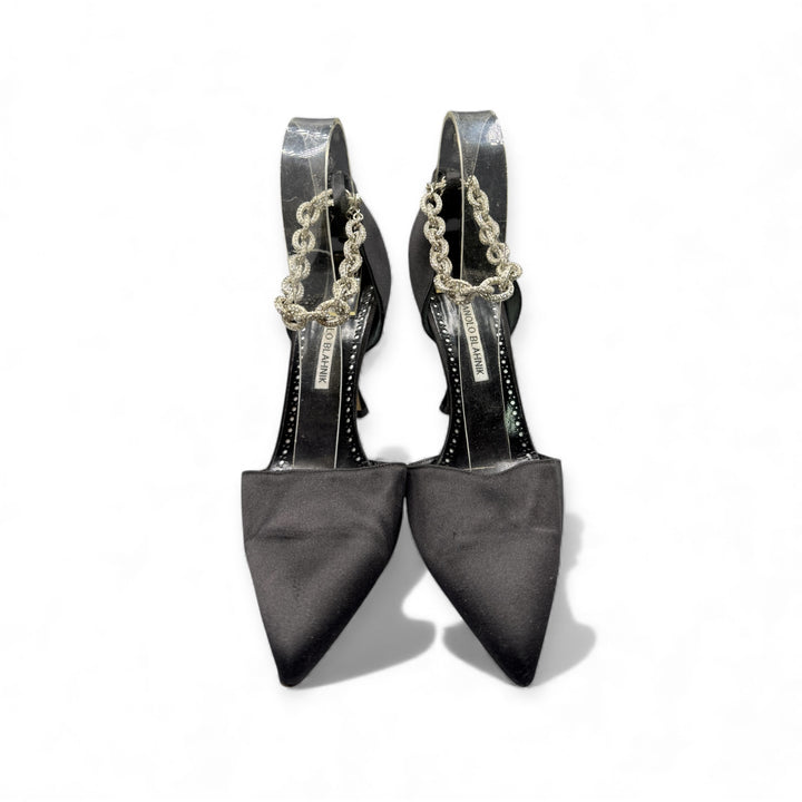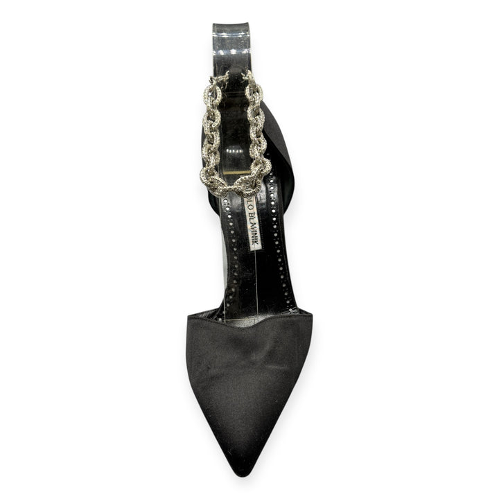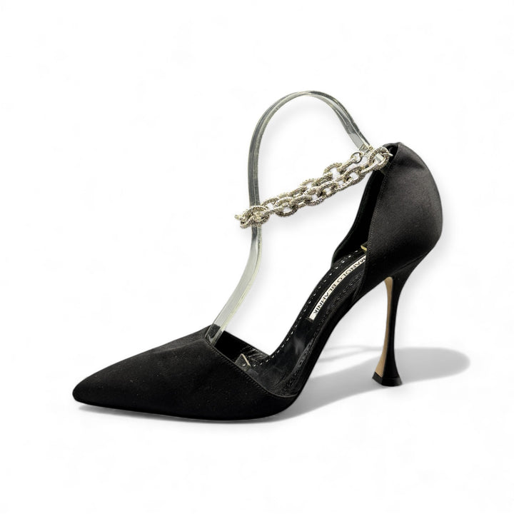 MANOLO BLAHNIK BLACK CRYSTALS STRAP CONE HEEL