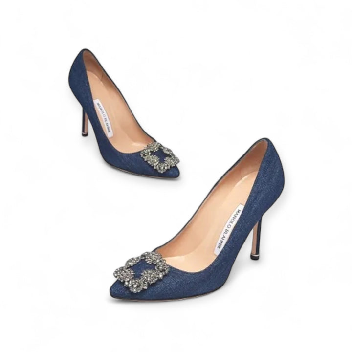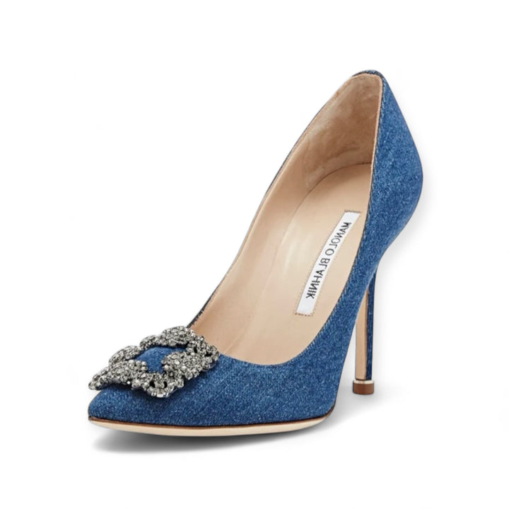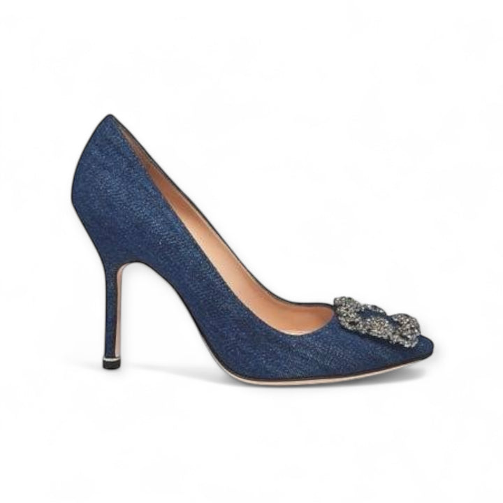 MANOLO BLAHNIK DENIM CRYSTALS HEEL