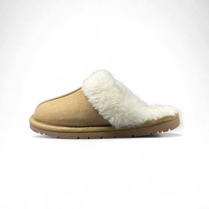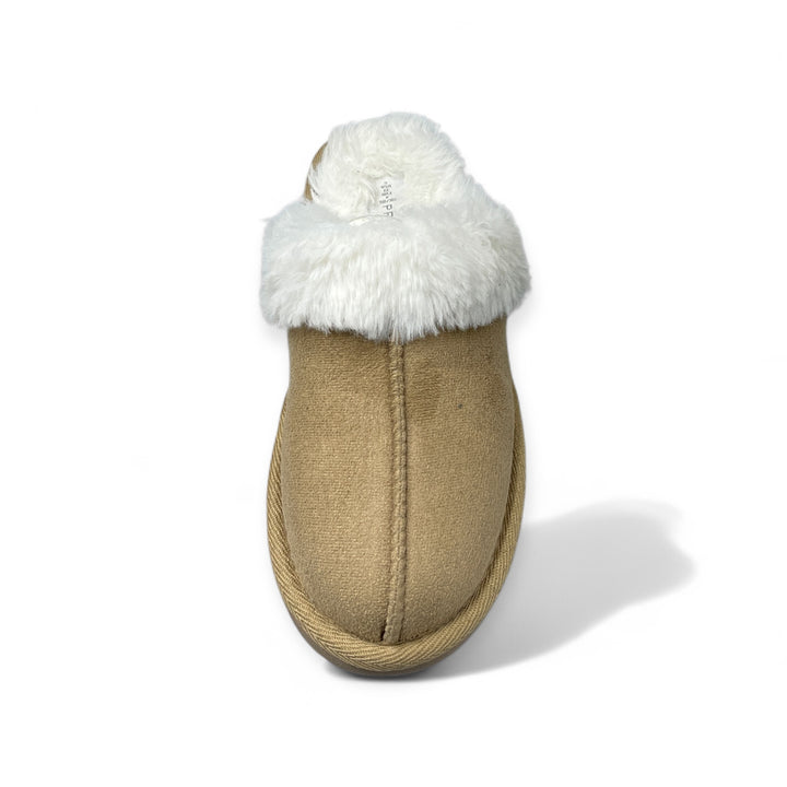 PRIMARK FLUFFY FLAT BROWN WITH WHITE FUR