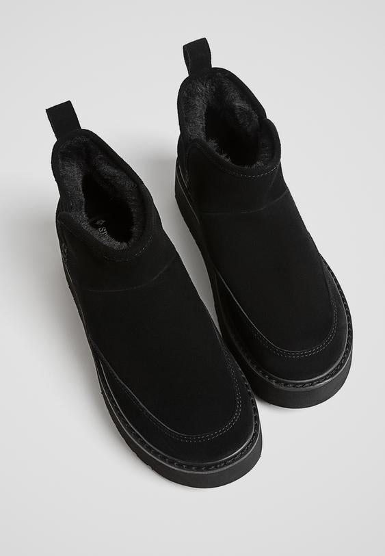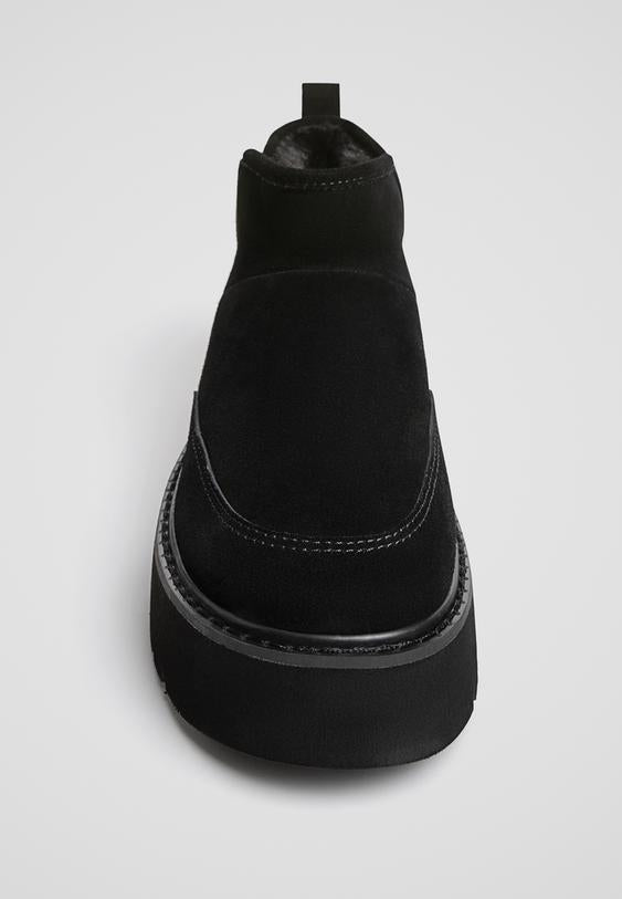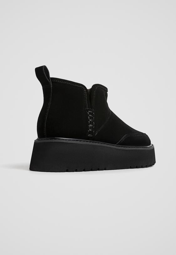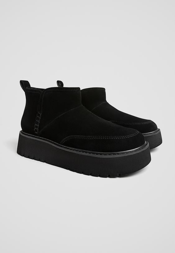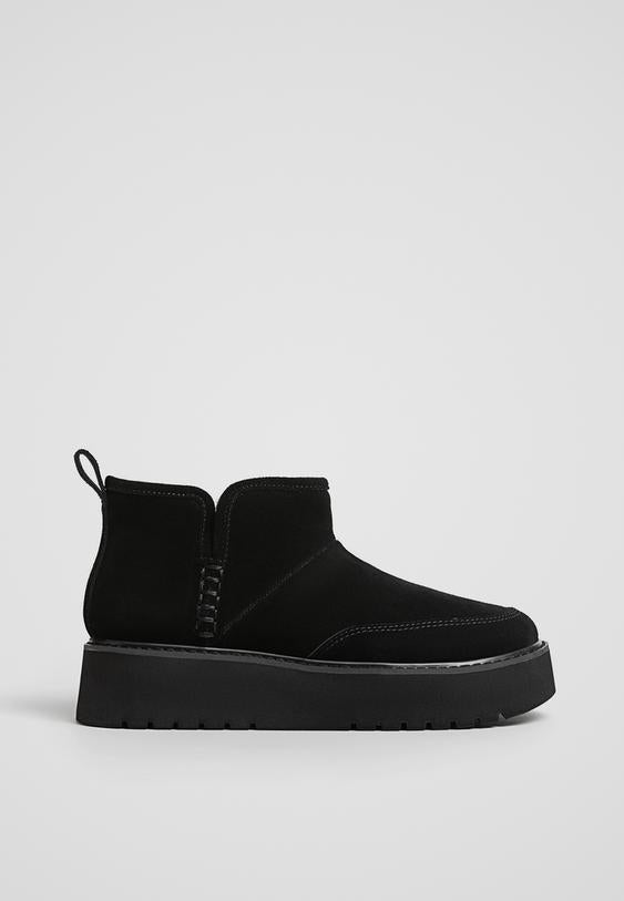 STRADIVARIUS WOMEN FUR-LINED LEATHER ANKLE BOOT - 9956/470/040