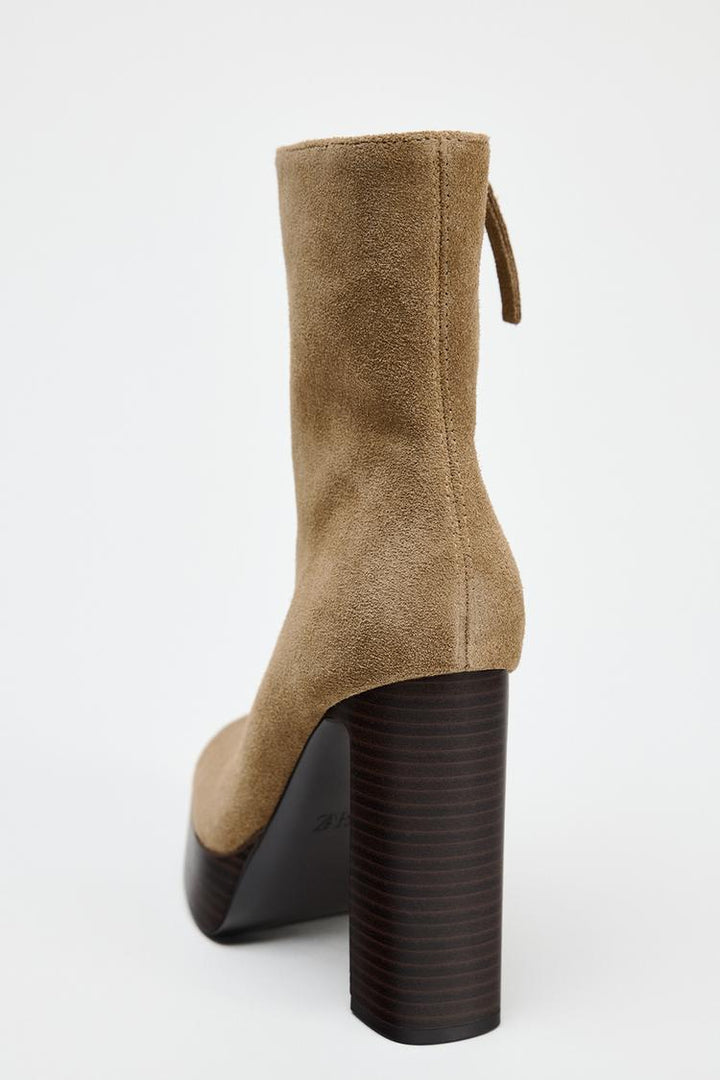 ZARA BEIGE BLOCK HEEL ANKLE BOOT 2109/510/105