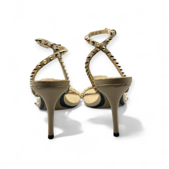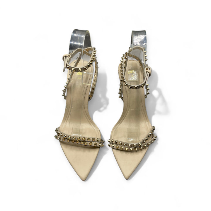 ZARA BEIGE STUDS DEISGN CONE HEEL