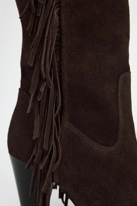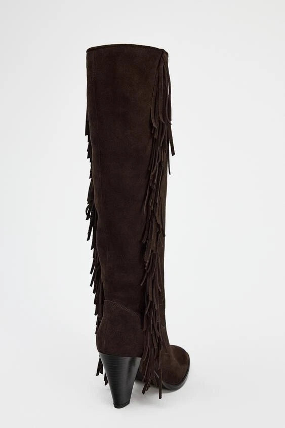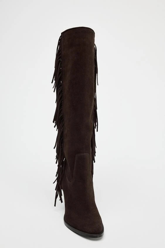 ZARA FRINGED BELOW THE KNEE BOOT BROWN SUEDE 2004/510/116