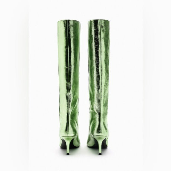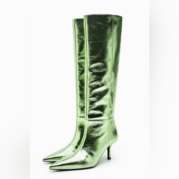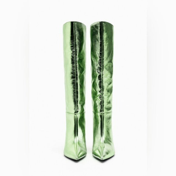 ZARA GREEN METALLIC LEATHER KNEE HIGH BOOTS 1014/110/500