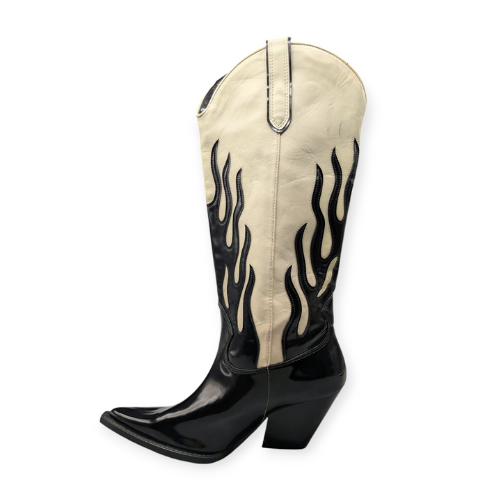 ZARA MID-CALF CONTRASTING FLAME COWBOY BOOTS - 3026/010/202
