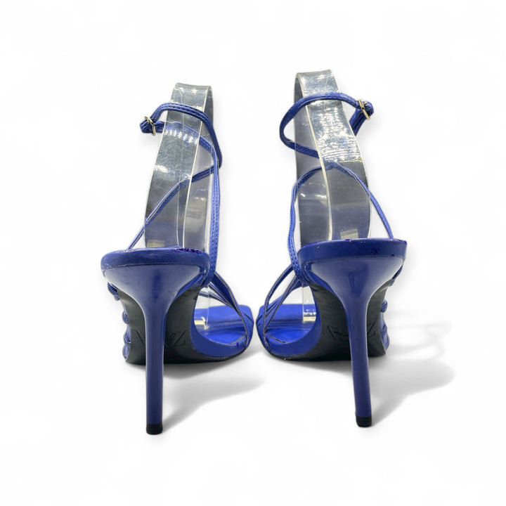 ZARA NAVY BLUE TRIPLE STRAP CONE HEEL