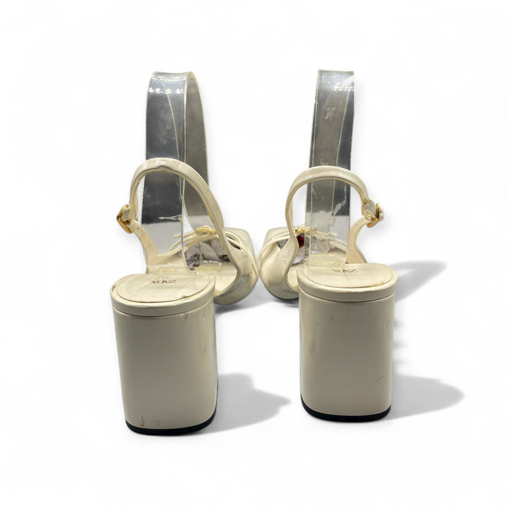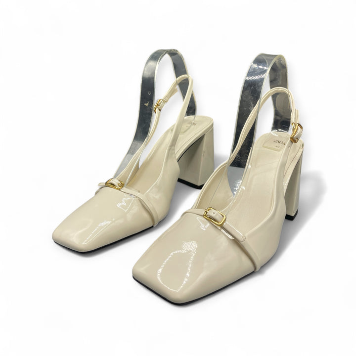 ZARA OFF WHITE BLOCK HEEL WITH GOLDEN BUCKLE