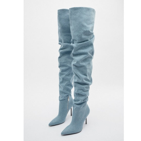 ZARA OVER THE KNEE DENIM BOOTS 3015/210/400