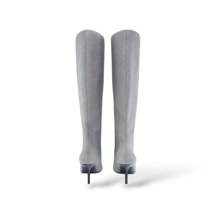 ZARA PARTY SILVER GLITTER HEELED BOOT 3047/010/092