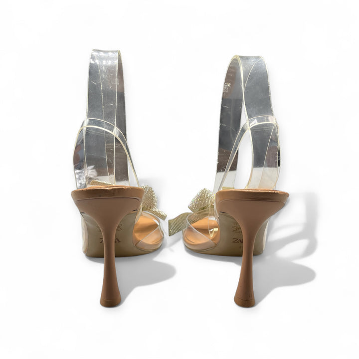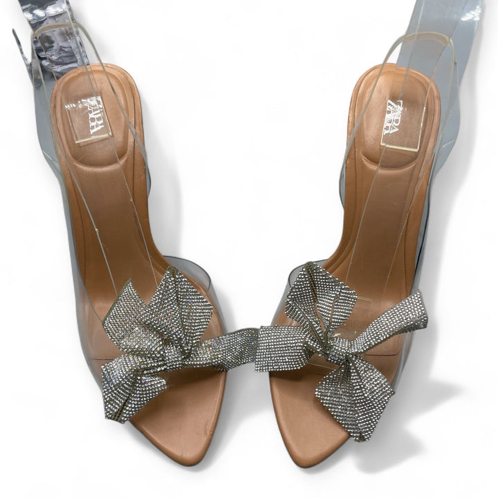 ZARA RHINESTONE FLOWER TRANSPARENT CONE HEEL