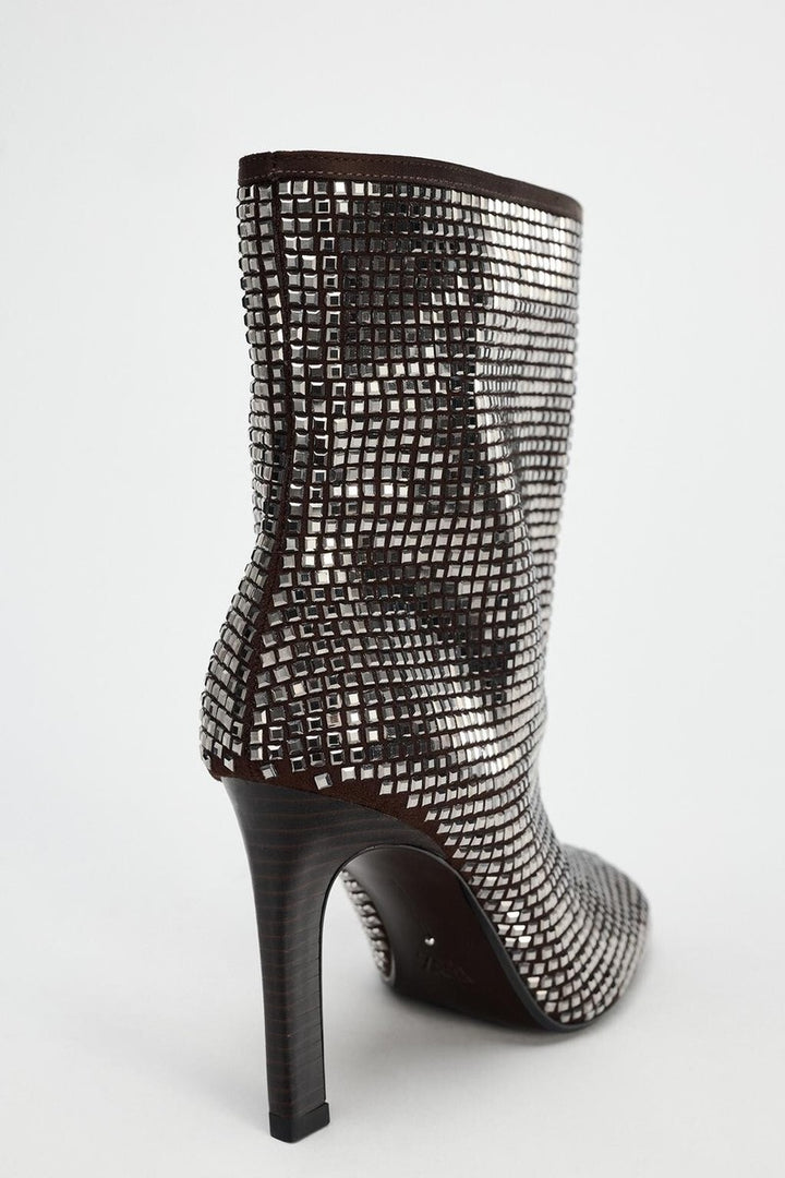 Zara Silver High Heel Ankle Boots Rhinestones 1144/410/808