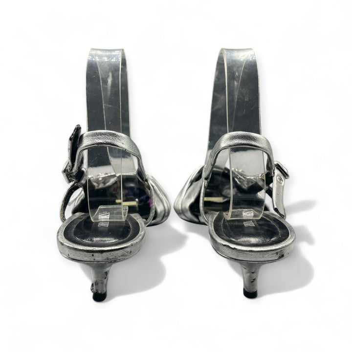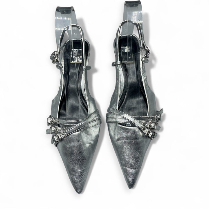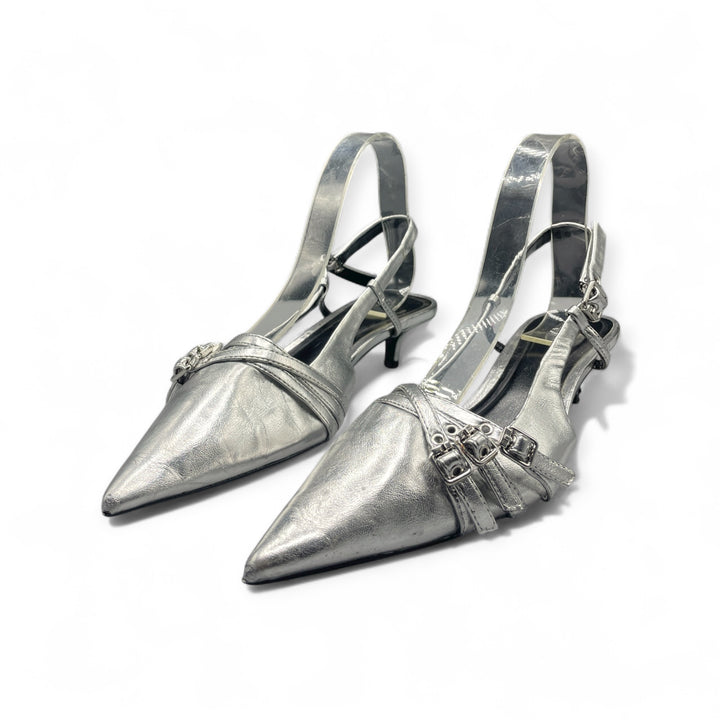 ZARA SILVER TRIPLE STRAP KITTEN CONE HEEL