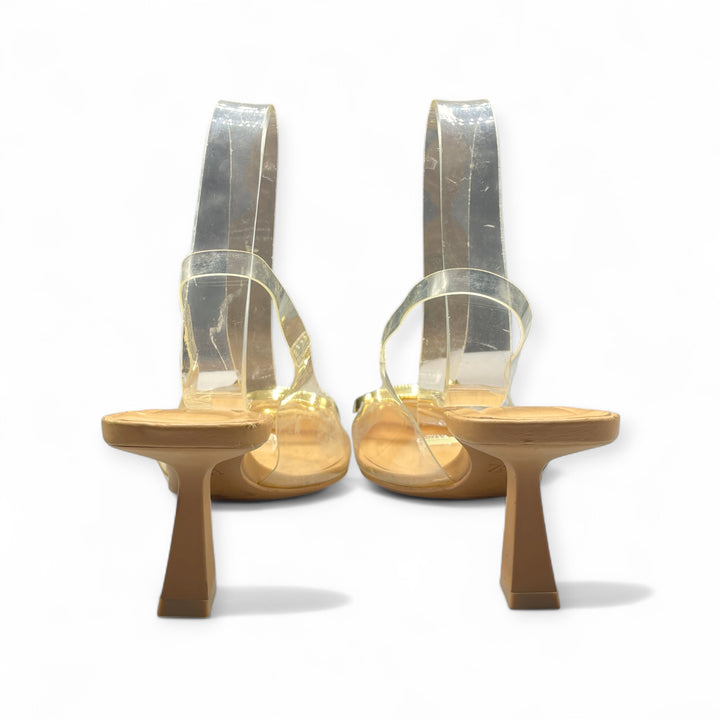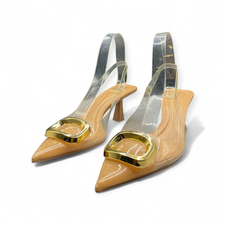 ZARA TRANSPARENT CONE HEEL FRONT GOLDEN BOX DESIGN