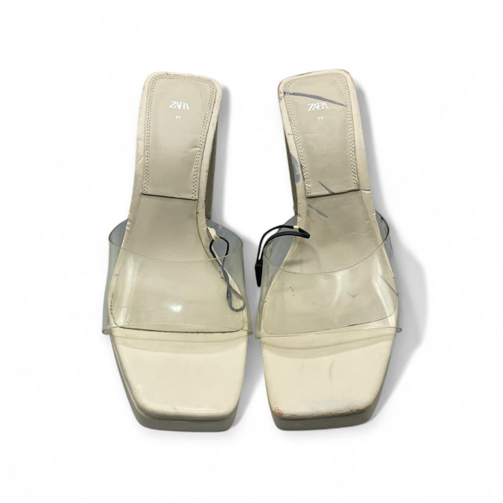 ZARA TRANSPARENT FRONT OFF WHITE BLOCK HEEL