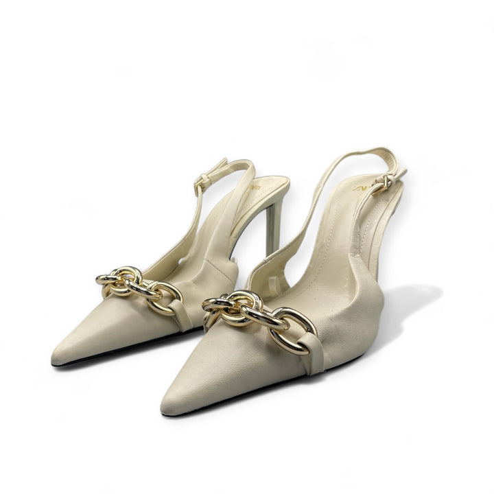 ZARA WHITE AND GOLD CHAIN CONE HEEL