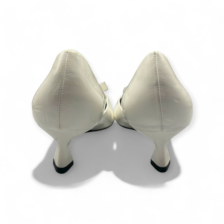 ZARA WHITE RIBBON KITTEN CONE HEEL