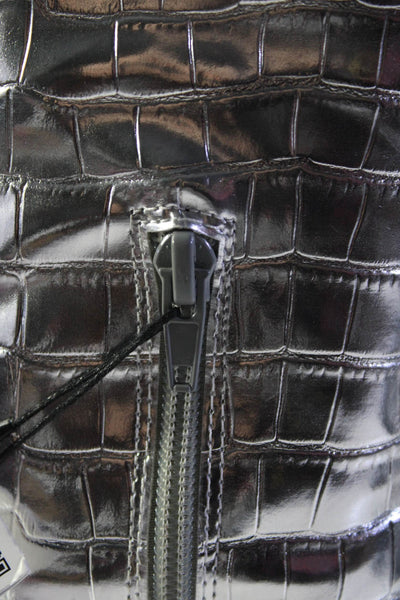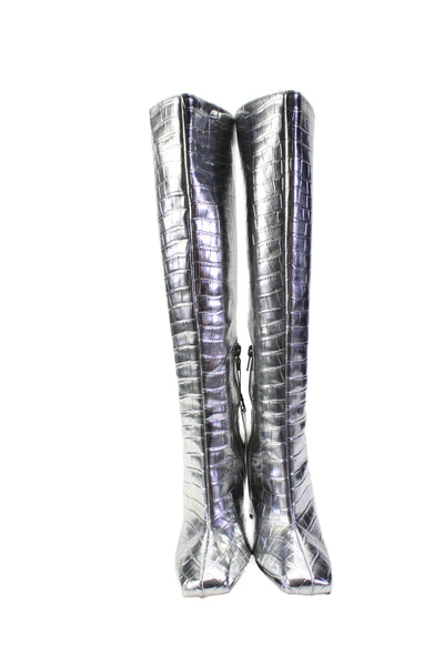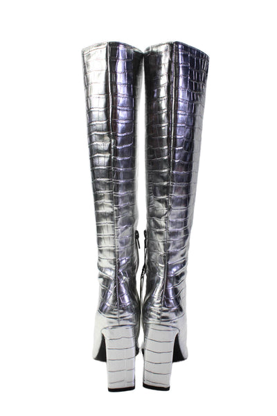 ZARA Womens Side Zip Block Heel Croc Printed Knee High Boots Silver 3004/010/092